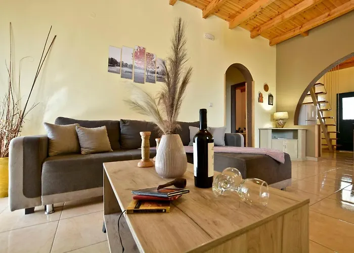 2-slaapkamer Sia'S Holiday Home bevindt zich binnen 10 minuten met de auto van het Messolonghi-strand en biedt draadloos internet. Gasten kunnen genieten van de ultieme ontspanning in het 130 m^2 grote appartement, uitgerust met luxe voorzieningen zoals een zonnedek en een zonneterras.